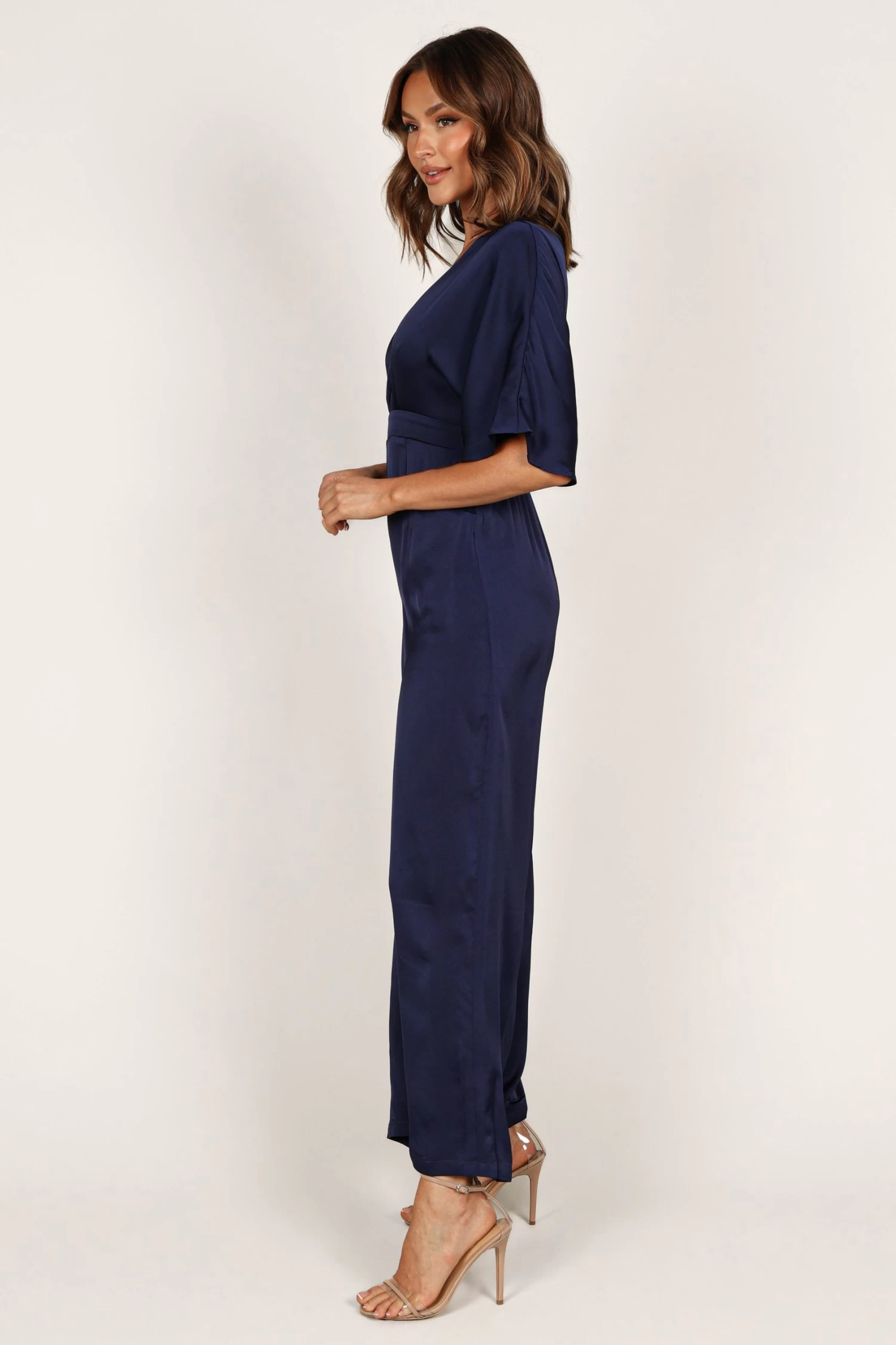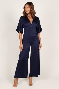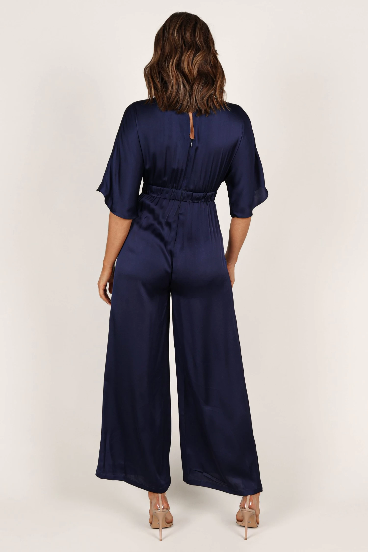 | DETAILS Step into the spotlight wearing our stunning wide leg jumpsuit! It features a flattering v neckline with a clasp closure, short sleeves and an invisible zip at the back for easy wear. The back neck opening is detailed with a button close and an elasticised waist to give you that perfect fit.