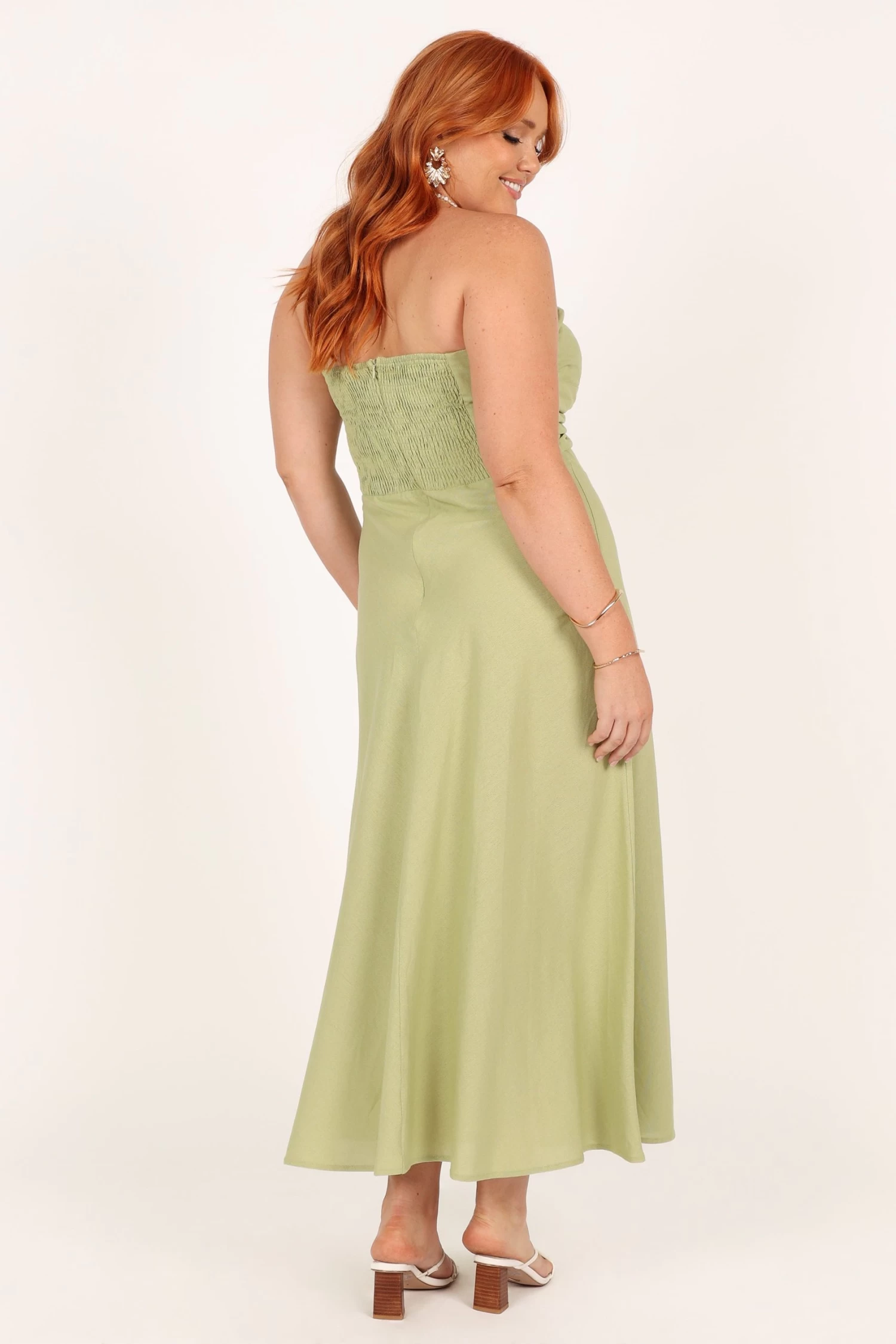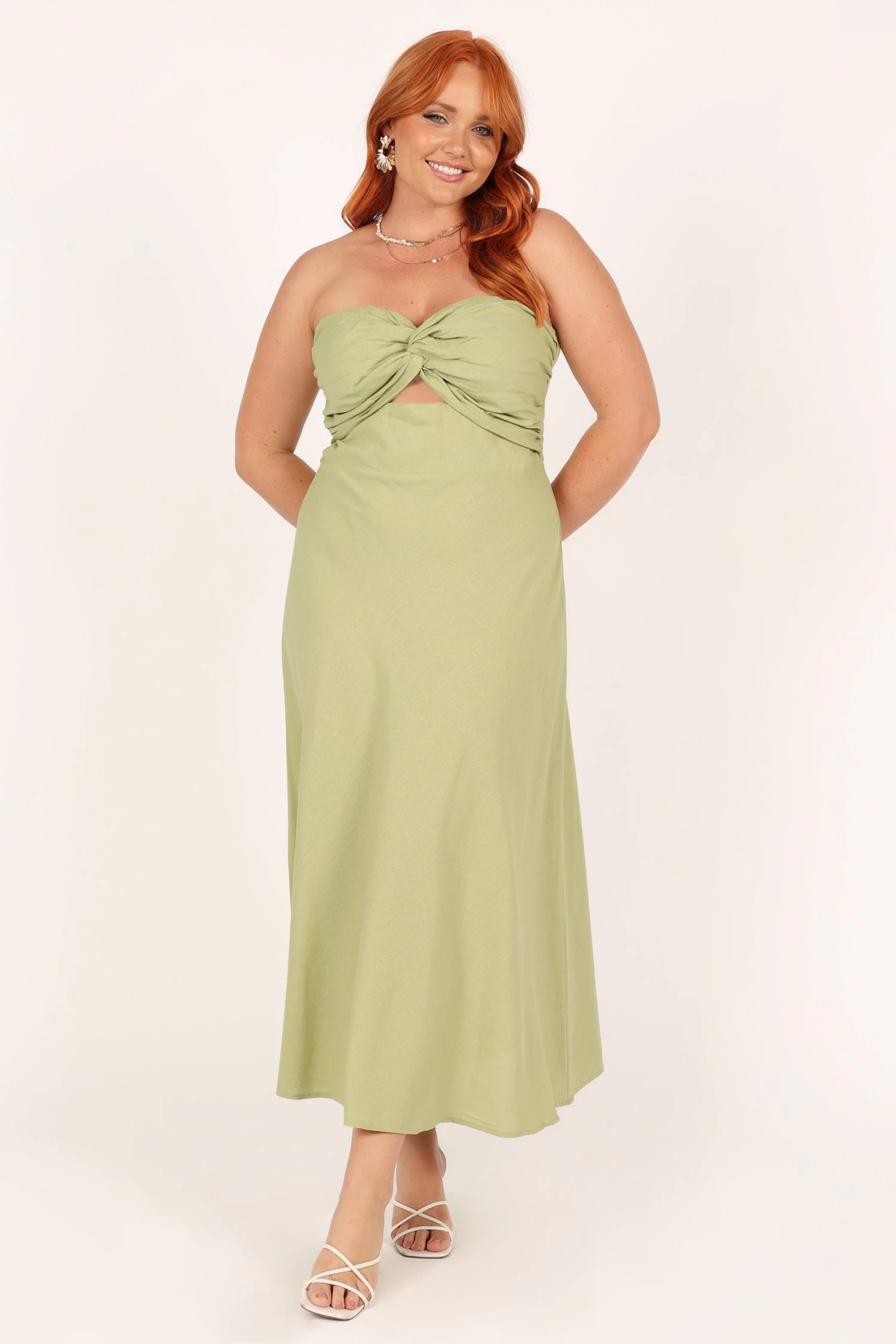 | DETAILS Our Rosetta maxi length dress is perfect for your next party. Boasting a strapless sweetheart neckline and curve-hugging fit, it’s sure to make you look amazing. There’s also a twist knot detail on the bust and a cut out feature under the bust for added style points.