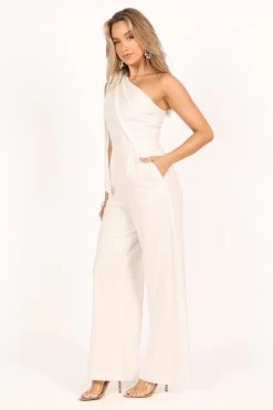 | DETAILS This one shoulder jumpsuit is the perfect addition to your party wardrobe. Featuring an asymmetrical neckline and a bow tie detail on the shoulder, it’s sure to make heads turn! It has a side invisible zip for easy access and functional side pockets so you can keep all your essentials close at hand.