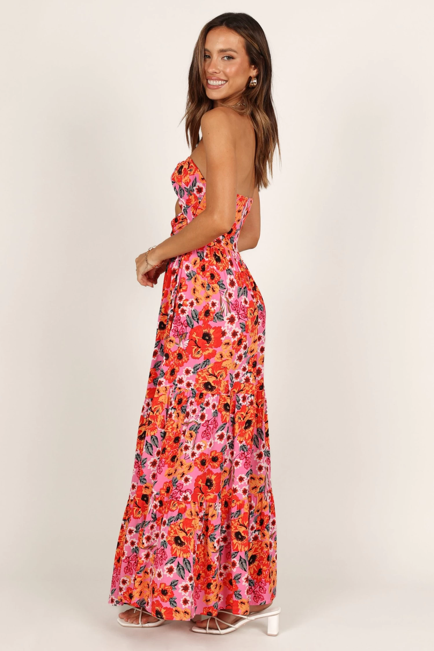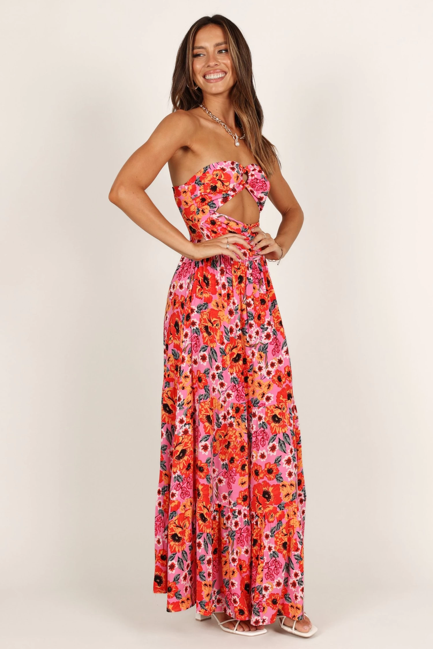 | DETAILS Sway into summer in style with this beautiful maxi length dress! Show off your curves with a sweetheart neckline, ring detail on the bust and a cut out feature under the bust. With an invisible side zip and hook and eye clasp for easy wear, you’ll be ready to take on any party!