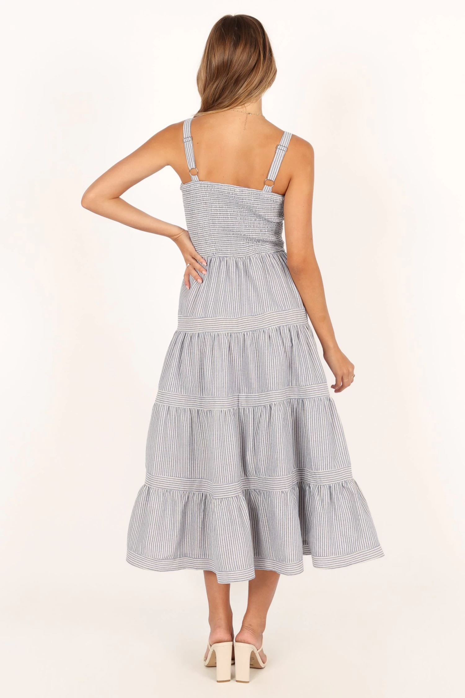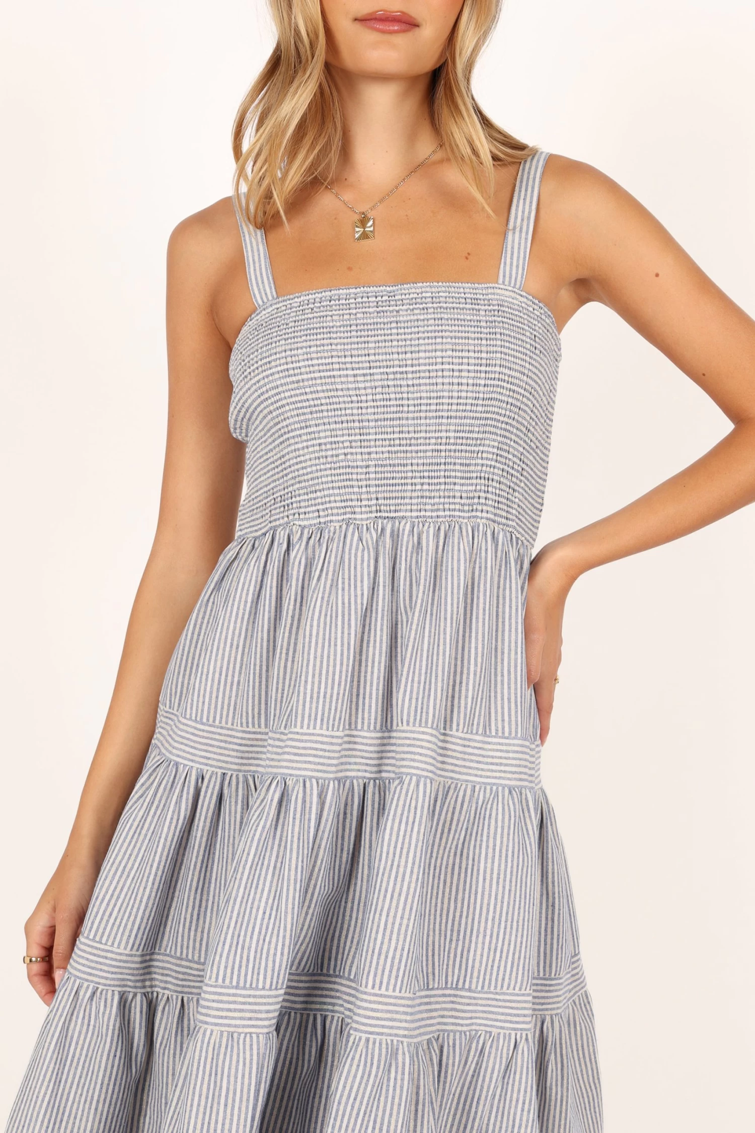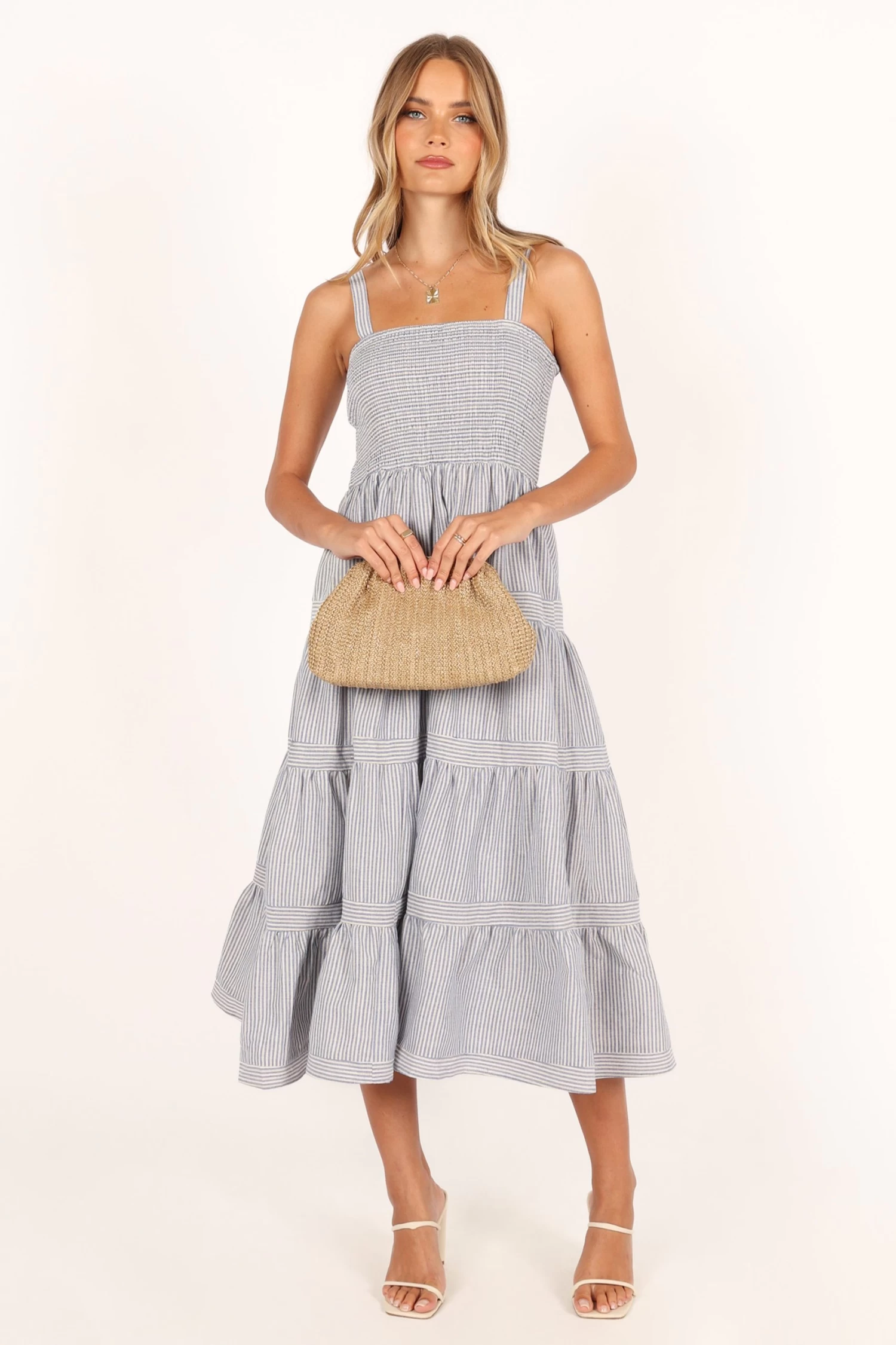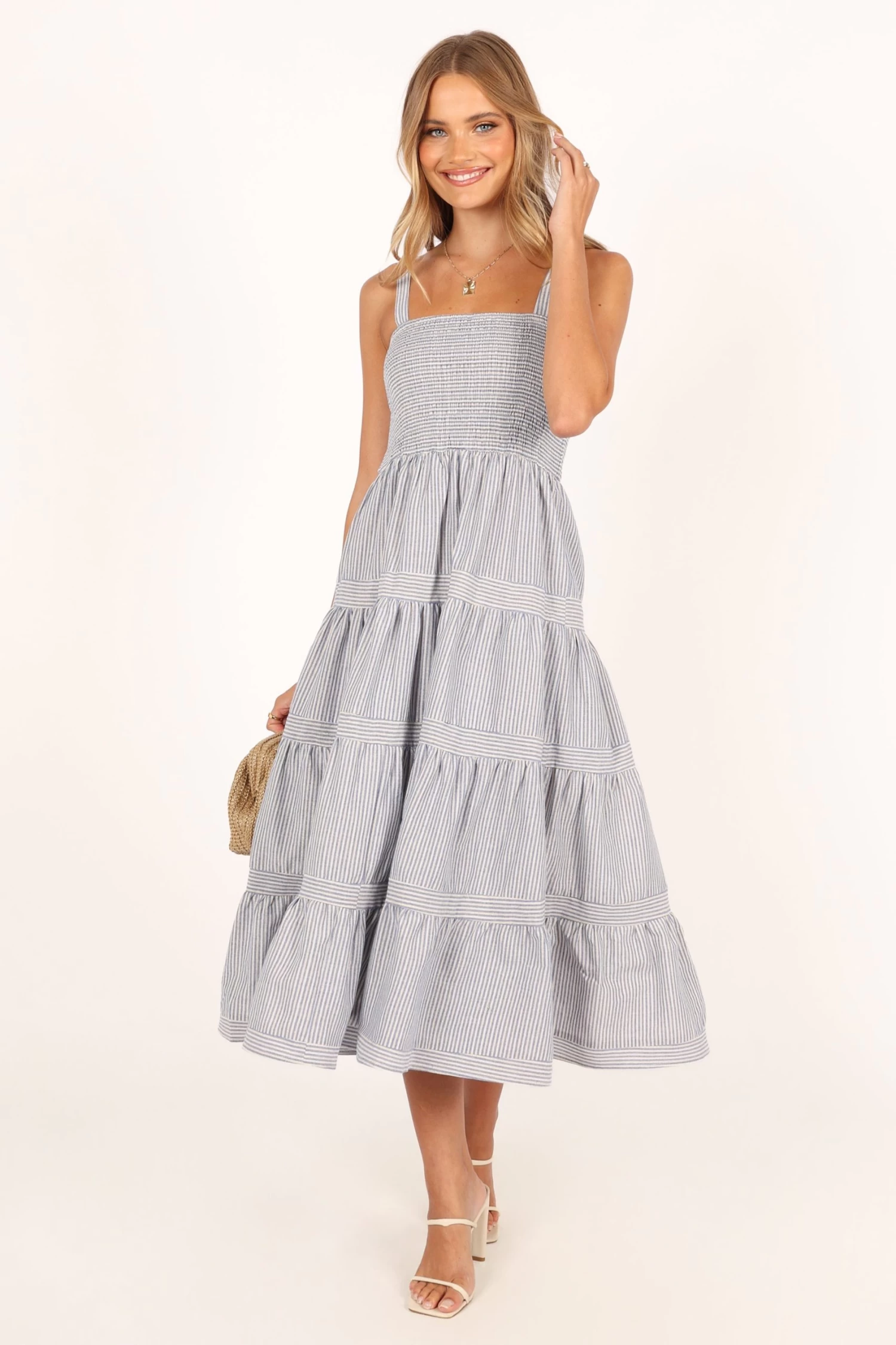 | DETAILS The perfect summer dress has arrived! Our midi length dress is sure to become your go-to for any occasion. The adjustable straps and shirred bodice provide just the right amount of structure while still maintaining a relaxed, comfortable fit.