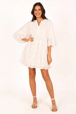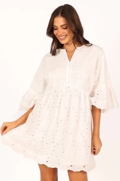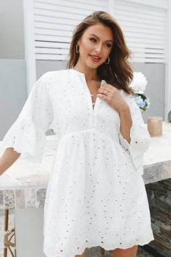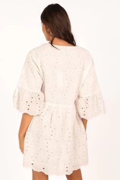 | DETAILS This beautiful mini dress is an ideal choice for your next summer soiree. Featuring a classic v neckline with subtle button down front, mid length sleeves with flutter sleeve detailing and an a line skirt, this piece is sure to make you stand out from the crowd!