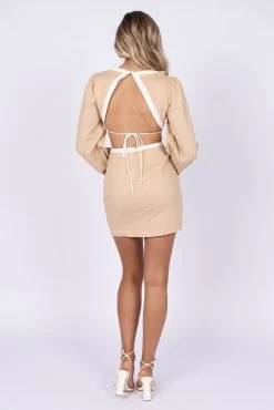| DETAILS This season, step out in style with this must-have mini dress. Showcasing an above knee length silhouette, it features a sultry V neckline with button closure and long sleeves that are finished off with elasticised cuffs for added comfort.