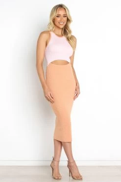| DETAILS Show off your curves in the most stylish way possible with this stunning two tone ribbed knit bodycon dress. Featuring a midi length, round neckline and front cut out detail, this dress is sure to turn heads wherever you go.