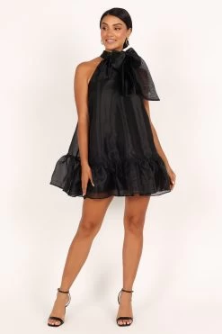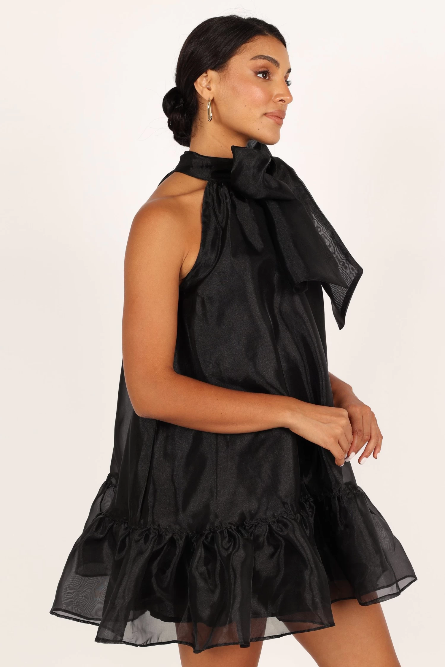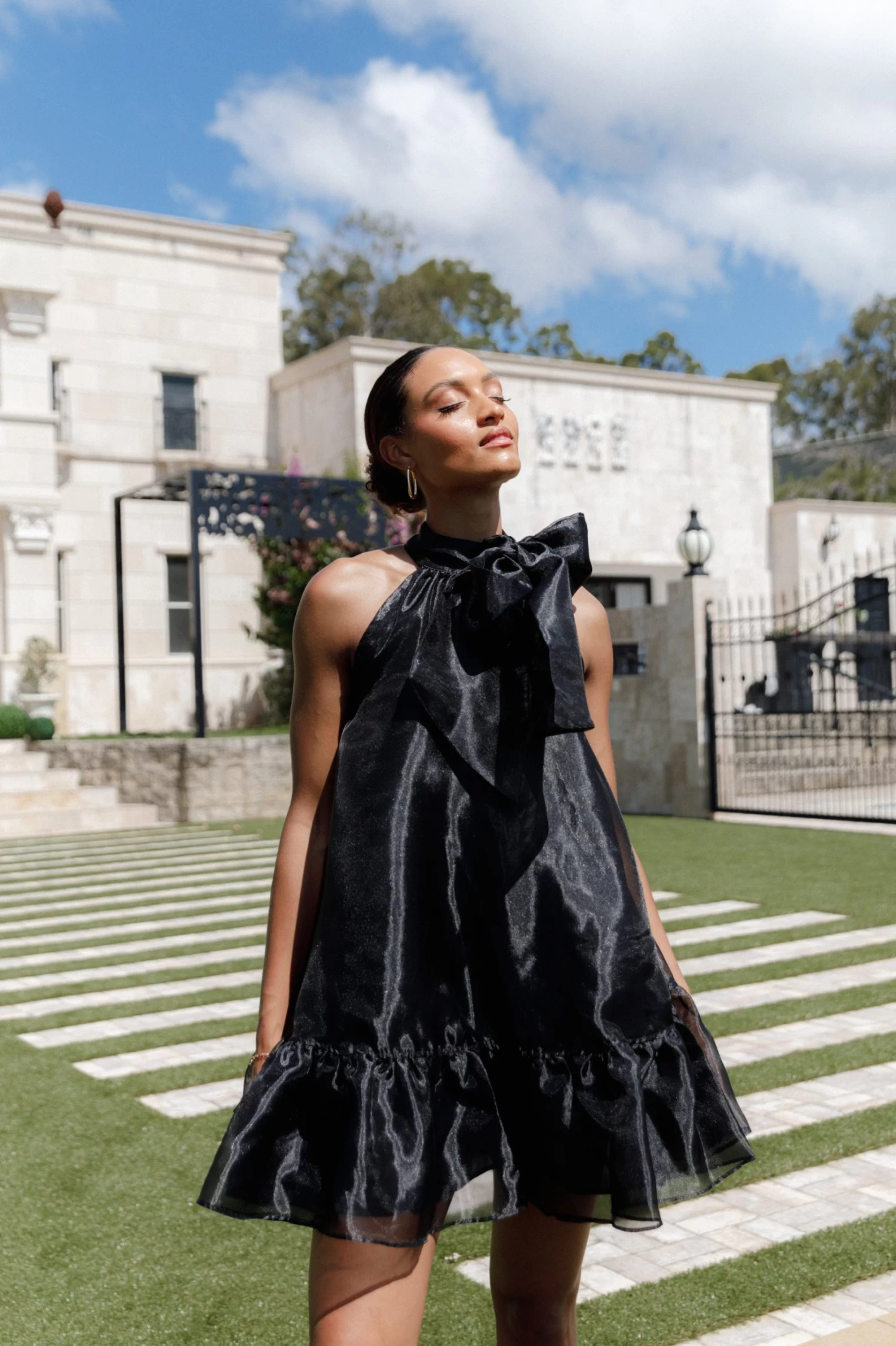 | DETAILS Are you ready to dress for the party? Make a statement in this stunning mini high neck dress with bow! This dress is sure to turn heads featuring a back neck opening with button close, making it easy and secure to wear.