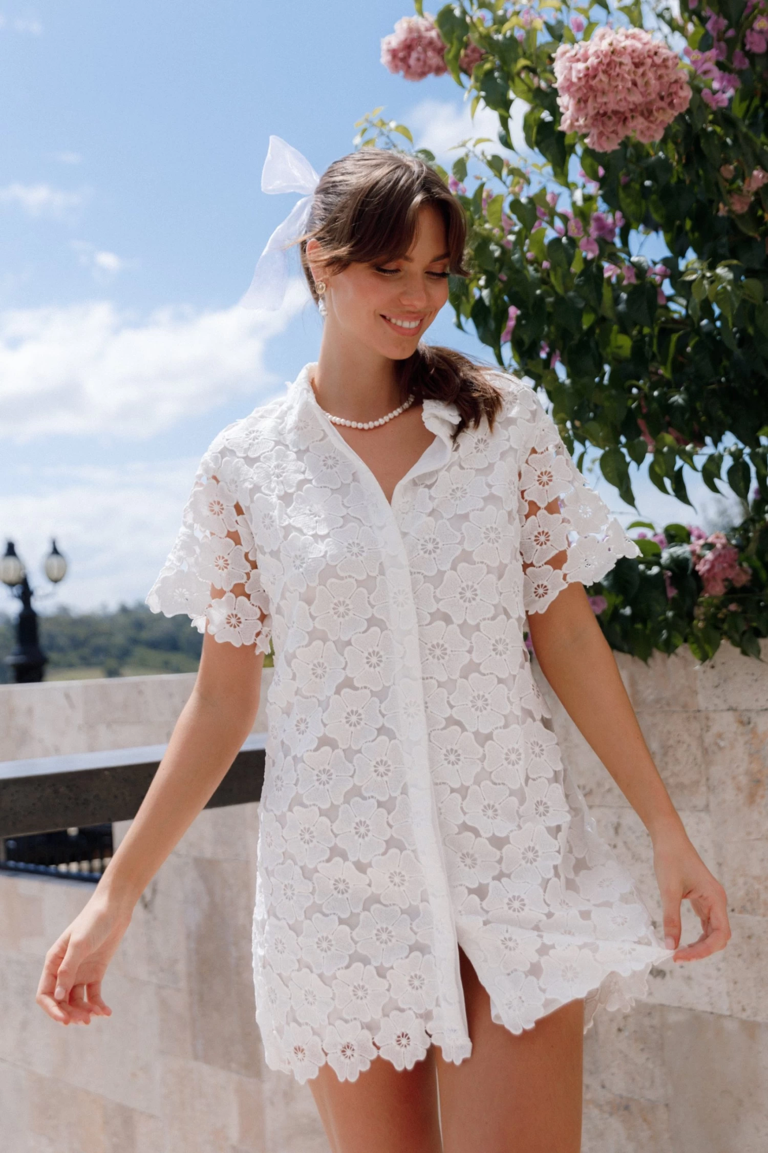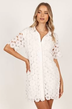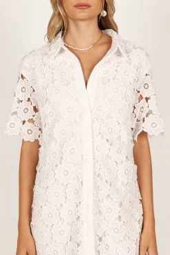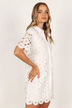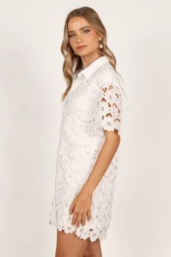 | DETAILS Make a statement with this above-the-knee dress! Featuring a classic collared neckline, short sleeves and functional buttons down the front, it’s the perfect balance of style and comfort.