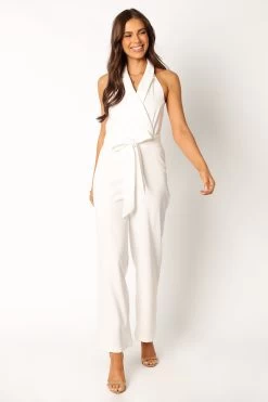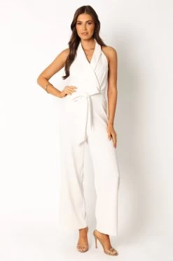 | DETAILS Introducing the must-have jumpsuit of the season! This stunning full length jumpsuit is crafted with a halter neck and button close for easy on and off. The crisp crossover V-neckline and notch lapel collar add sophistication to this look, while the sleeveless design ensures you can show off your arms in style.