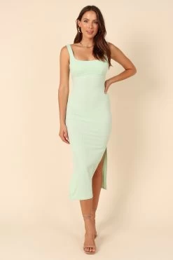 | DETAILS Take your style game up a notch with this ultra-flattering and on-trend midi bodycon dress. Show off your curves in all the right places with its lightweight, stretch ribbed material, square neckline and back twist detail.