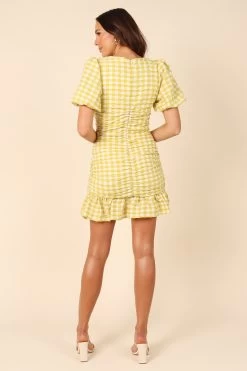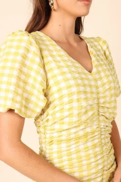 Tenice V Neck Gingham Dress – Green
