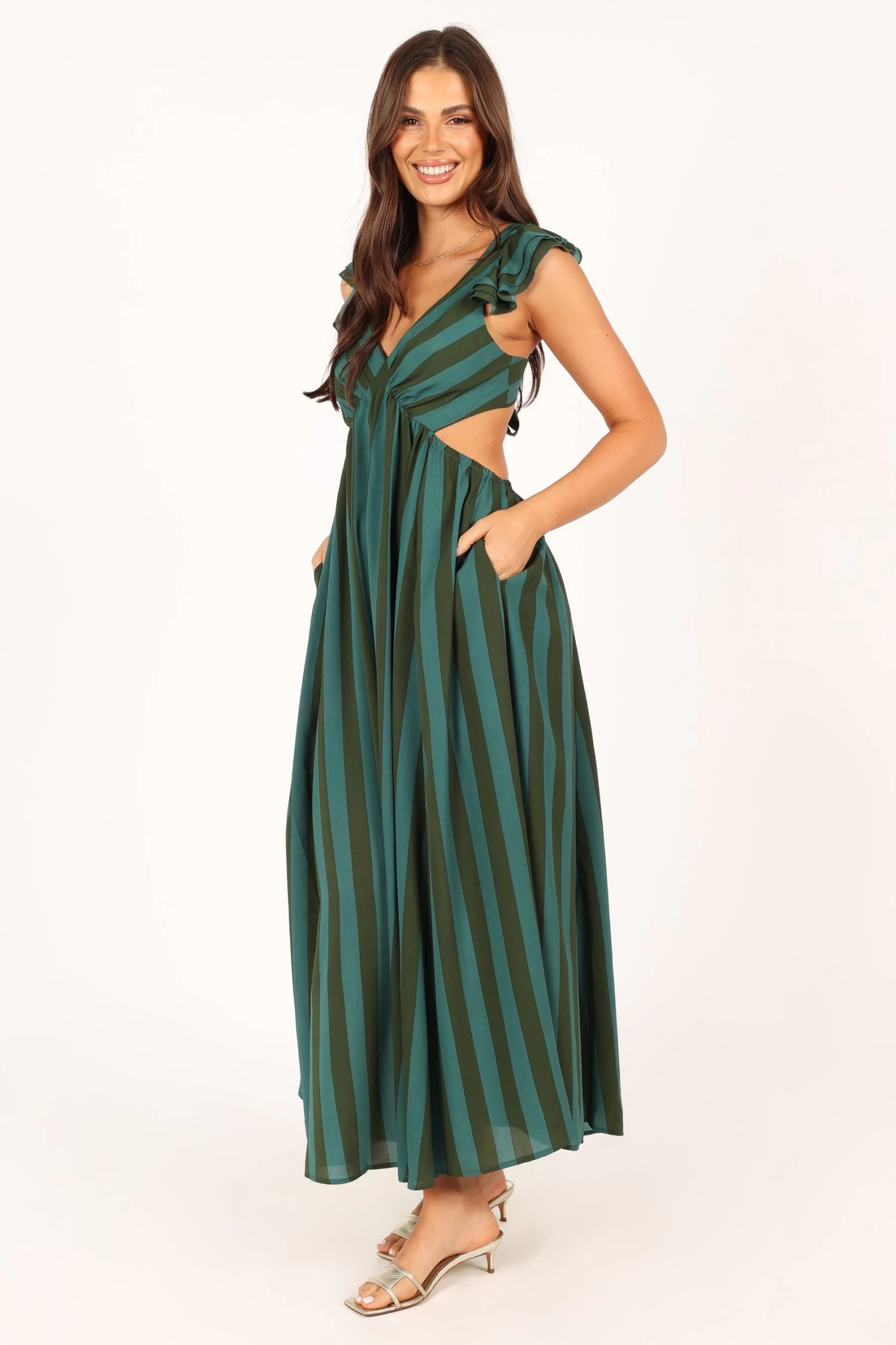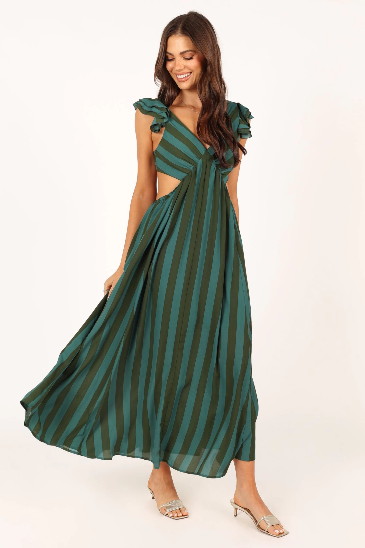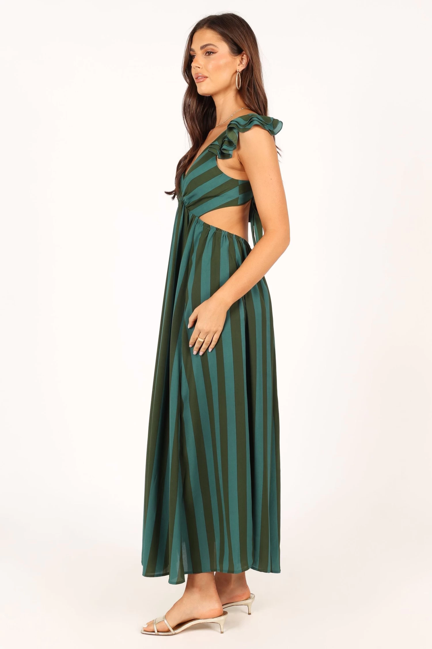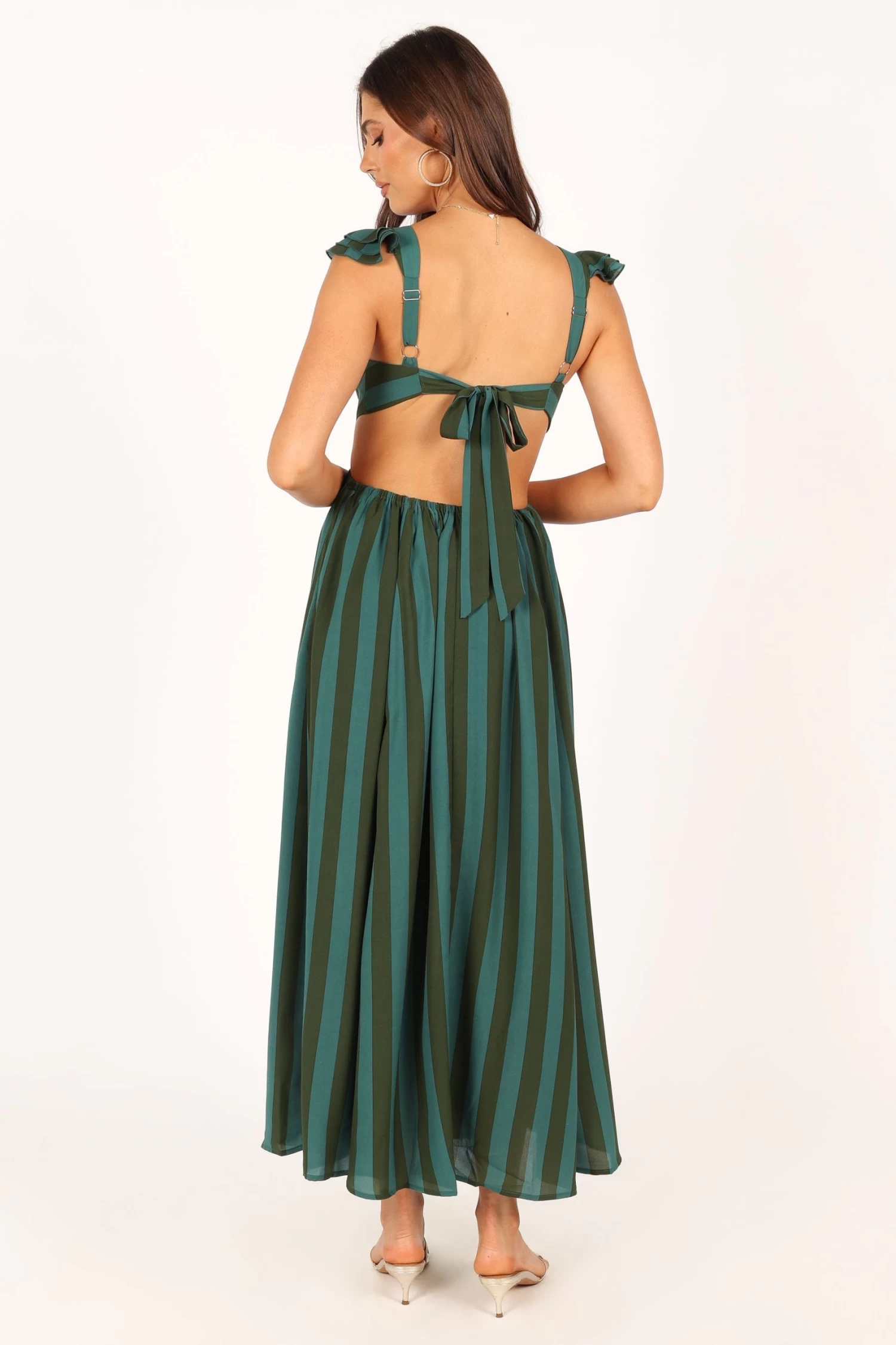 | DETAILS Ladies, turn heads in this must-have maxi length dress! Featuring a gorgeous v neckline with tie back closure, adjustable straps and cutout detail, this dress is the perfect combination of fashion and function.