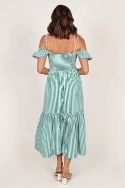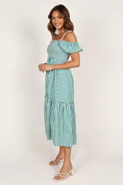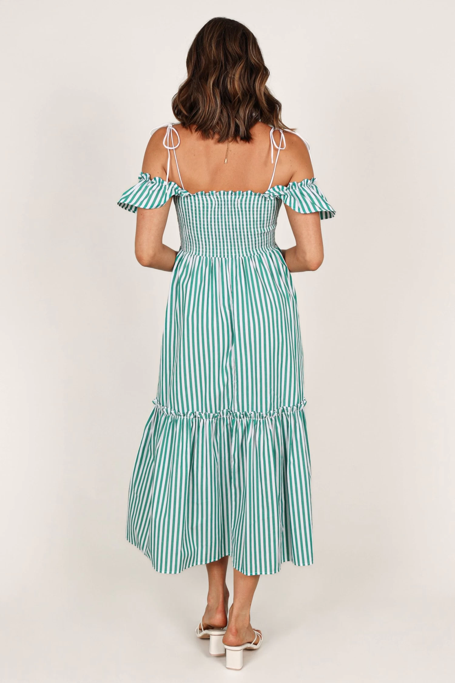 | DETAILS This maxi dress is the perfect go-to for any summertime event. The off shoulder style, adjustable thin ties and a shirred bodice provide a flirty and fun feel to the piece, while the maxi length offers an elegant touch.