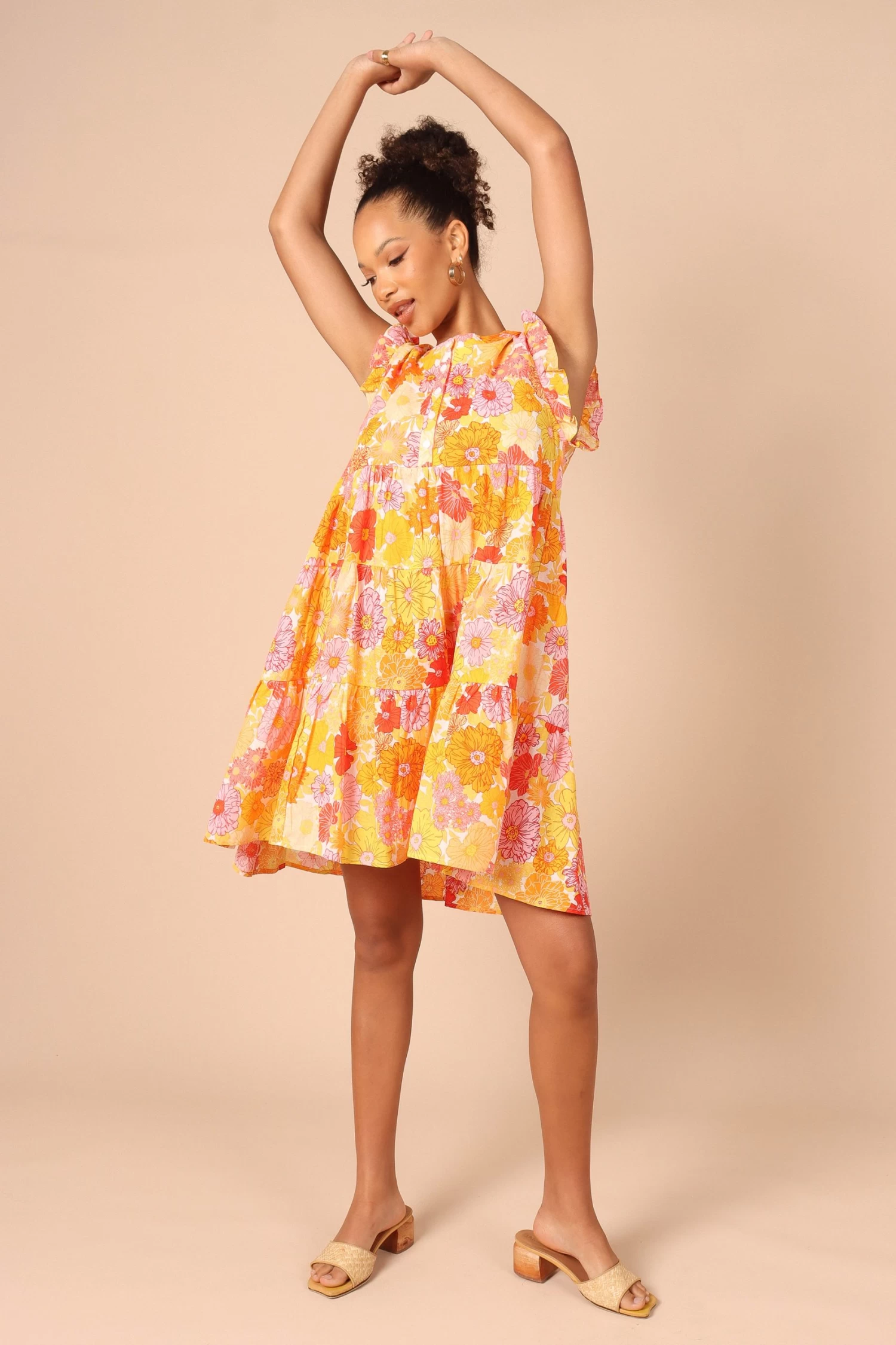 | DETAILS Make a statement this summer with this mini smock dress! This round neck mini dress is the perfect way to show off your style, featuring beautiful ruffle detail on the short sleeves and functional buttons down the front.